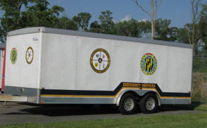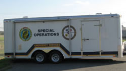 This 20-foot unit has been built to supplement on scene operations at a major event or incident. The trailer is equipped with multiple 800 MHz radios on the Worcester County radio system, medical first aid equipment and emergency preparedness brochures. The unit could be deployed to events such as the Worcester County Fair, Furnace Town festival or the Pocomoke Cypress Festival.