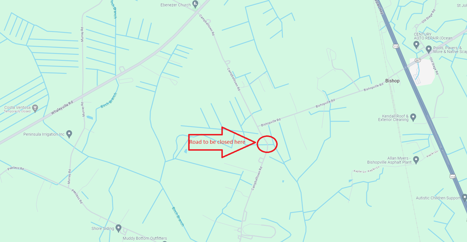 May 02 2024 By smcmichen Campbelltown Road in Whaleyville will be closed Wednesday, May 8th to replace a failed crossroad pipe. Repairs should be completed the same day. or more information, please contact the Roads Division at 410-632-2244.