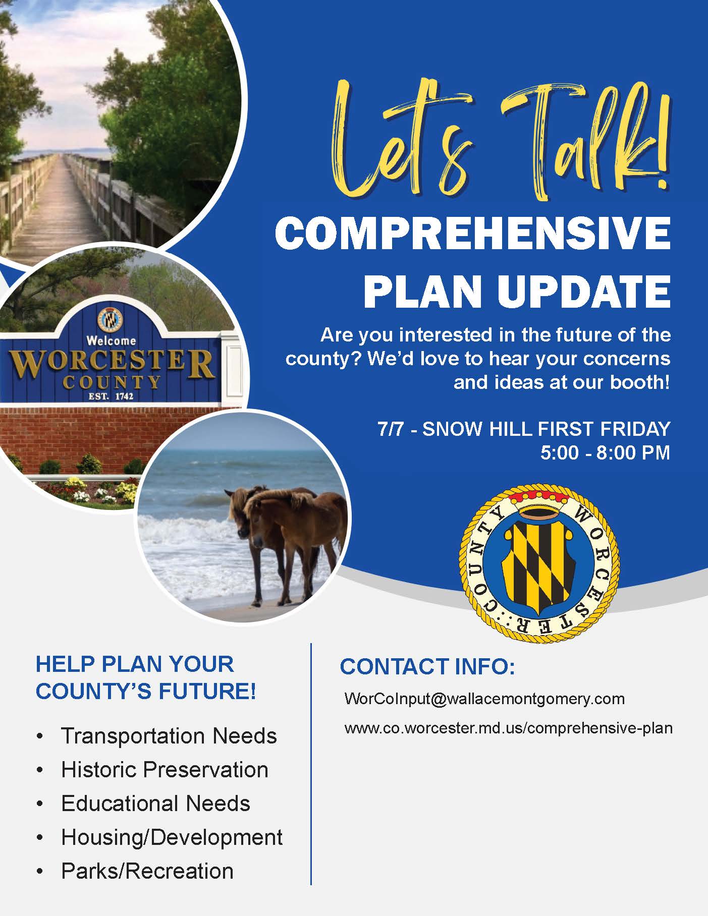 Public invited to share ideas and concerns on future growth with county staff during First Friday in Snow Hill on July 7.